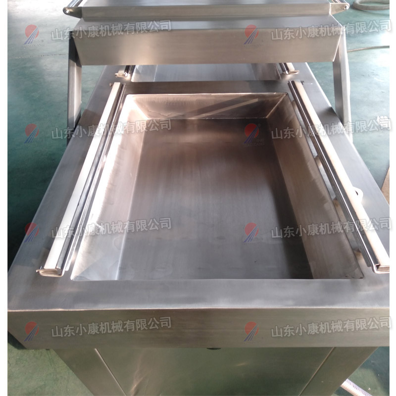 一、雙室真空包裝機。如果產品小包裝,可以用常規(guī)雙室真空包裝機。若尺寸較大,可以將雙室真空包裝機工作臺面訂做成下凹式真空包裝機,防止袋內的液體流出。它的下凹槽是根據產品包裝大小來決定的。下凹槽并不是越深越好,而是要根據物品的實際情況來確定,常用的規(guī)格一般為4CM 6CM 10CM三種,用戶需要根據自己的產品來確定選購哪一種規(guī)格。酸菜里是有些水分的,用這種下凹的機型可以避免水分被抽出來。