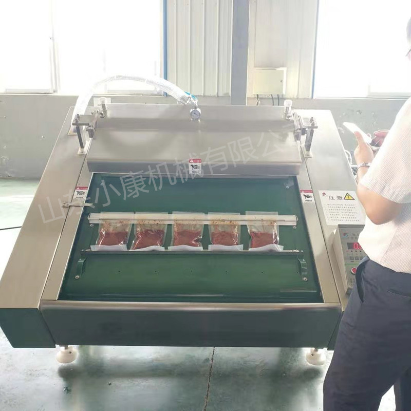 二、滾動式真空包裝機。滾動式真空包裝機封口線長度是1000mm,整機0-40度可調節(jié),防水電腦版控制,主要原器件為進口原件,工作室采用不銹鋼加強結構,既能方便清除又堅固耐用,能防止因包裝酸堿鹽等物品而引起的腐蝕生銹。該設備故障率低、操作簡單,是大包裝或帶湯汁產品的首先選擇機型。