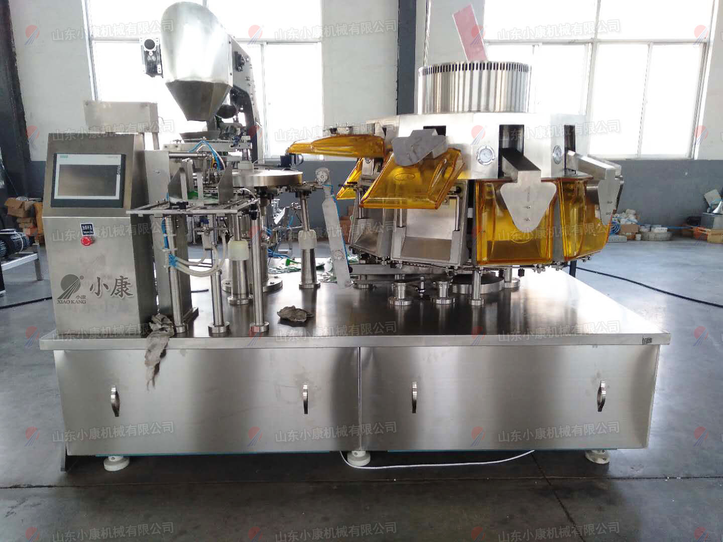 將袋子放在設備的取袋部,設備機械抓會自動的取袋、開袋、給計量裝置信號計量并落料、封口、輸出。該設備的出現代替了手工包裝,操作方便,包裝速度快,節(jié)約了人工費用以及管理費用,為企業(yè)大大減少了生產成本,提高了利潤率。該給袋包裝機包裝范圍廣泛,除了包裝酸菜以外,還可包裝液體、醬體、粉劑、顆粒、固體各種物料,只需根據不同的物料選擇不同計量充填裝置即可。