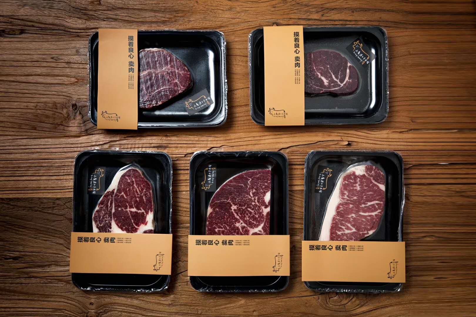 在鄭州一家賣場中,貼體包裝的牛肉產(chǎn)品疊加成扇形、花瓣形或一字排開,紅白花紋的牛肉在金色紙板的映襯下,就像一盤盤展示中的藝術(shù)菜品,陳列出了一道亮麗的風(fēng)景線。此外,金色紙板上印有品牌名稱,展示商品的同時(shí)也宣傳了品牌。