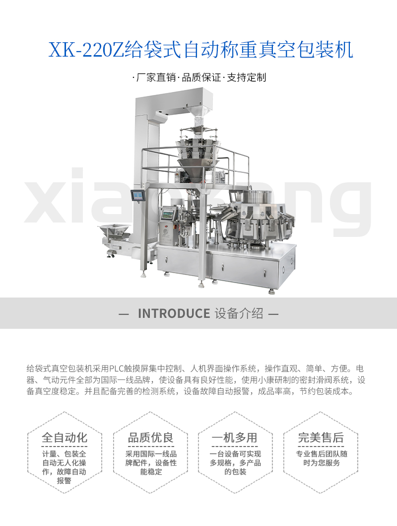 名稱:XK-220Z給袋式自動稱重真空包裝機